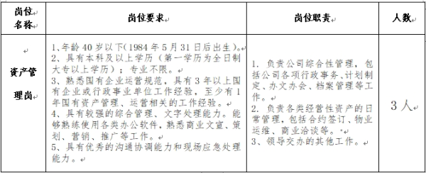(三)本次共公開遴選資產(chǎn)管理崗3人。