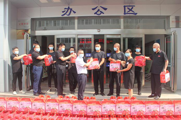 8月9日、10日北關(guān)區(qū)總工會(huì)副主席薛梅、保障部部長(zhǎng)司尚雯來到安陽市洹河保安服務(wù)有限責(zé)任公司,送來抗洪防疫慰問品鮮桃500多箱,向堅(jiān)守崗位、奮戰(zhàn)一線的保安隊(duì)員進(jìn)行慰問,提醒大家做好防控工作的同時(shí)一定要做好自身防護(hù)。