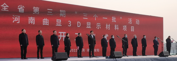 2022年1月4日上午,集團(tuán)副總經(jīng)理溫惠玲陪同市委副書記、市紀(jì)委書記黃明海,市政府副市長(zhǎng)王新亭,市政府副市長(zhǎng)、安陽縣委書記王紅兵以及河南投資集團(tuán)有限公司、市城鄉(xiāng)一體化示范區(qū)、東旭集團(tuán)、新石器公司等相關(guān)領(lǐng)導(dǎo)前往示范區(qū)參加我市“三個(gè)一批”項(xiàng)目開工儀式。在開工儀式活動(dòng)現(xiàn)場(chǎng),黃明海書記宣布全市第三期“三個(gè)一批”活動(dòng)暨河南曲顯3D顯示材料項(xiàng)目開工。
