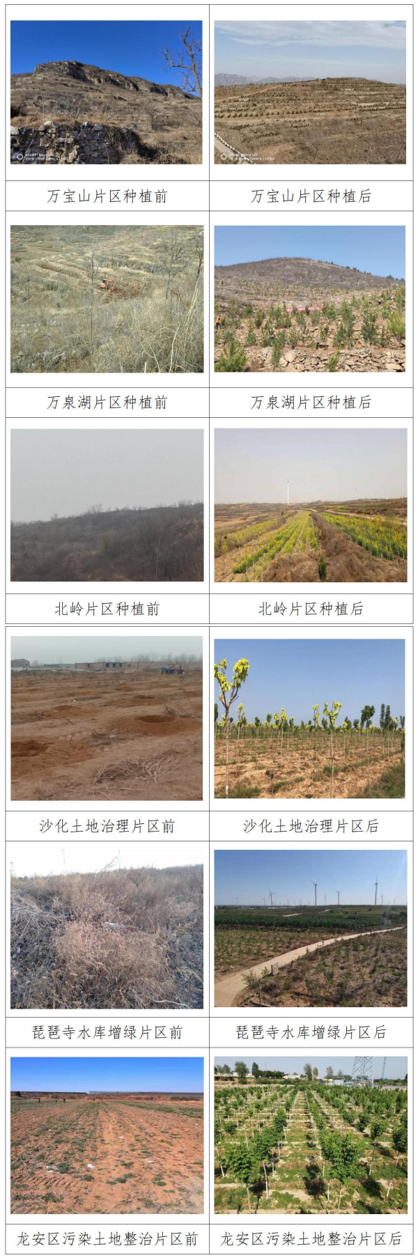 北嶺片區(qū)僅僅是我市國儲林項目的一個縮影。我市儲林項目建設(shè)地點位于我市轄一市三縣三區(qū):林州市、安陽縣、內(nèi)黃縣、湯陰縣、龍安區(qū)、殷都區(qū)、北關(guān)區(qū),建設(shè)面積59萬余畝。項目自啟動以來,迅速掀起大規(guī)模國土綠化熱潮,三年時間累計完成造林12萬余畝,植樹984萬余株。項目的實施不但改善了我市人居生活環(huán)境,更進(jìn)一步提高了我市森林面積,使我市森林覆蓋率提升了1.4個百分點,不僅促進(jìn)了我市創(chuàng)建“國家級森林城市”工作,更著力打造“林在城中、城在林中”的綠色安陽、生態(tài)安陽和美麗安陽。